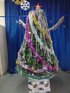 настроение создавала красавица ёлка, украшенная новогодними игрушками,