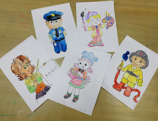 раскрасили рисунки с изображением понравившихся профессий.